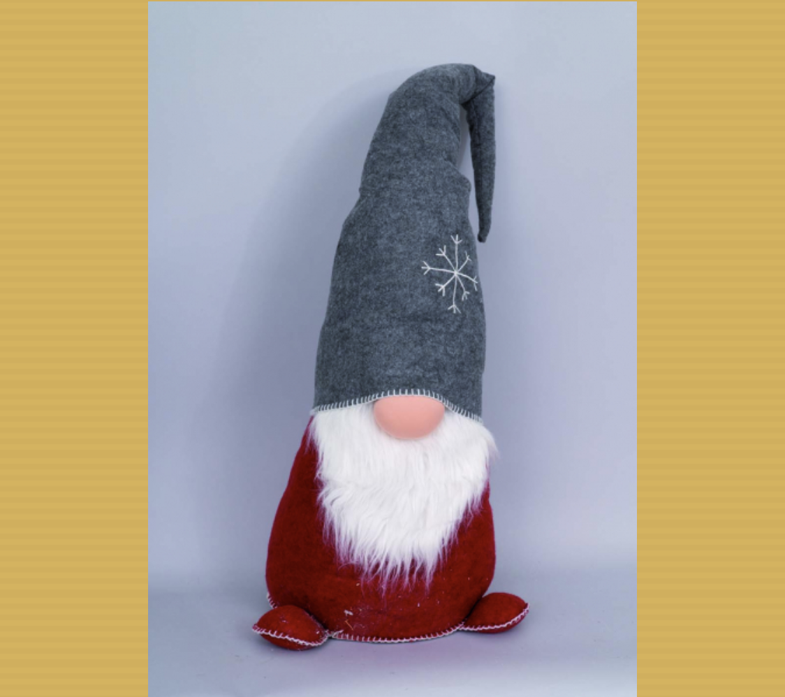 Naturra propone Gnomo Grande, con cappello grigio e calze rosse e barba bianca seduto altezza 127