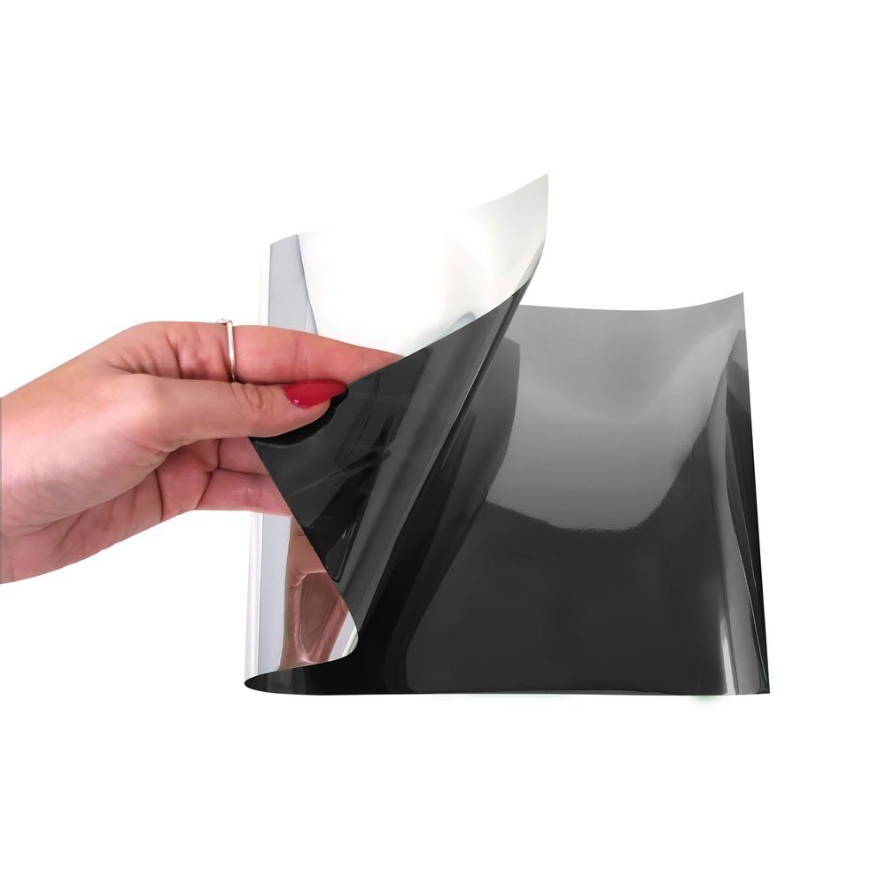 - Fascioni parasole adesivi sfumati in trasparentissimo film di poliestere antiscratch effetto specchio.