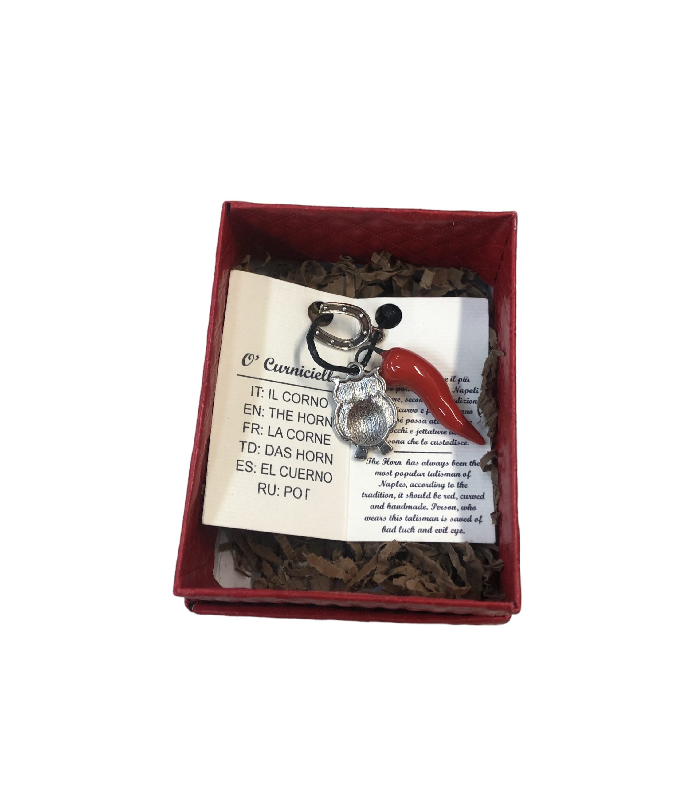Il Corno, da sempre il più diffuso portafortuna a Napoli deve essere secondo la tradizione rosso ricurvo e fatto a mano affinché pozza allontanare malocchi e jettature dalla persona che lo costudisce.
